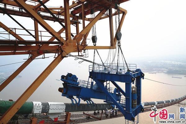 五峰山長江大橋開始安裝纜載吊機啦!經過三天分段吊裝作業,9月3日下午3點,五峰山長江大橋首臺纜載起重機安裝到位,標志著五峰山長江大橋已具備中跨鋼桁梁架設條件。