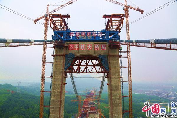 纜載起重機是架設中跨鋼桁梁的大型機械設備,要把一個自重300噸的龐然大物安全精準安裝到兩根主纜上,是一件非常不容易的事。為此,施工方中鐵大橋局連鎮鐵路項目部召開專題會議,多次研討施工方案,安排技術人員與施工人員技術交底,由一分部自管架子隊擔任安裝任務,指定裝吊經驗豐富的師傅帶班安裝,在確保安全的同時,首臺纜載起重機順利安裝就位,為中跨鋼桁梁架設和年內全橋貫通提供了堅實保障。