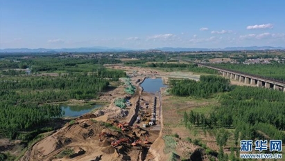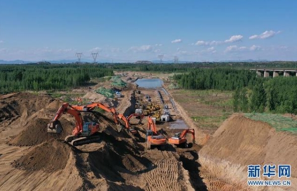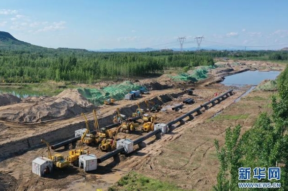 6月4日,工人在河北省灤州市油榨鎮(zhèn)境內(nèi)的灤河河床上進行中俄東線天然氣管道工程(長嶺-永清)第八標段施工(無人機照片)。 新華社記者 楊世堯 攝