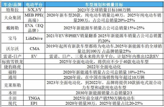 包括大眾、戴姆勒、寶馬、通用、豐田等幾乎所有的車企都給出了明確的電動化信號,且都制定了清晰的目標(biāo)。宏大的目標(biāo)對于動力電池的需求自然水漲船高。