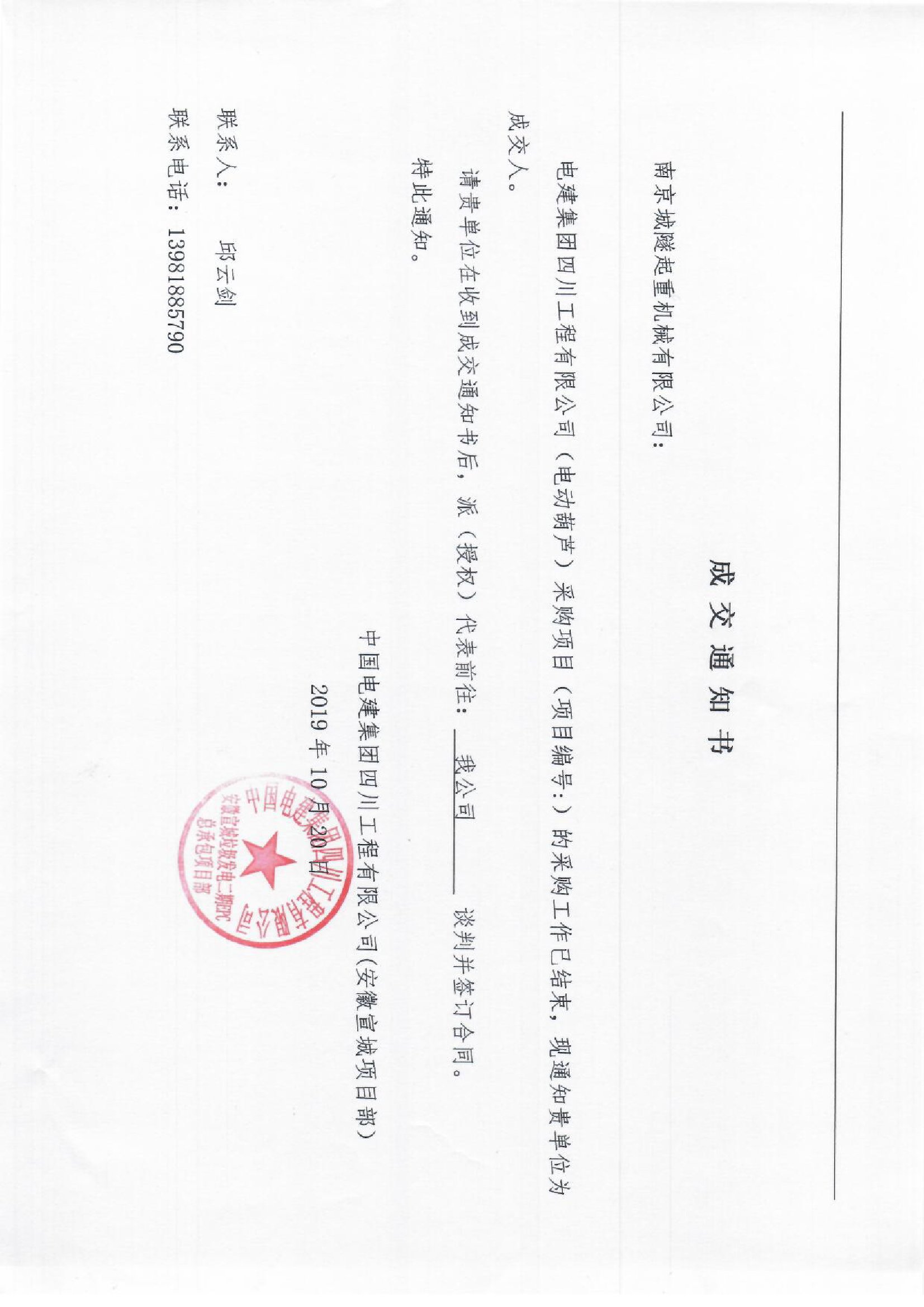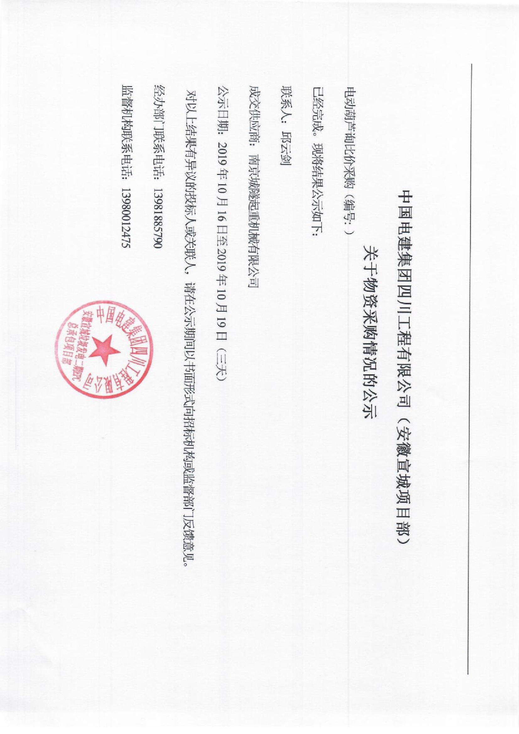 移動版:【設備類】中國電建山東電建公司四川工程公司電動葫蘆采購項目成交公示