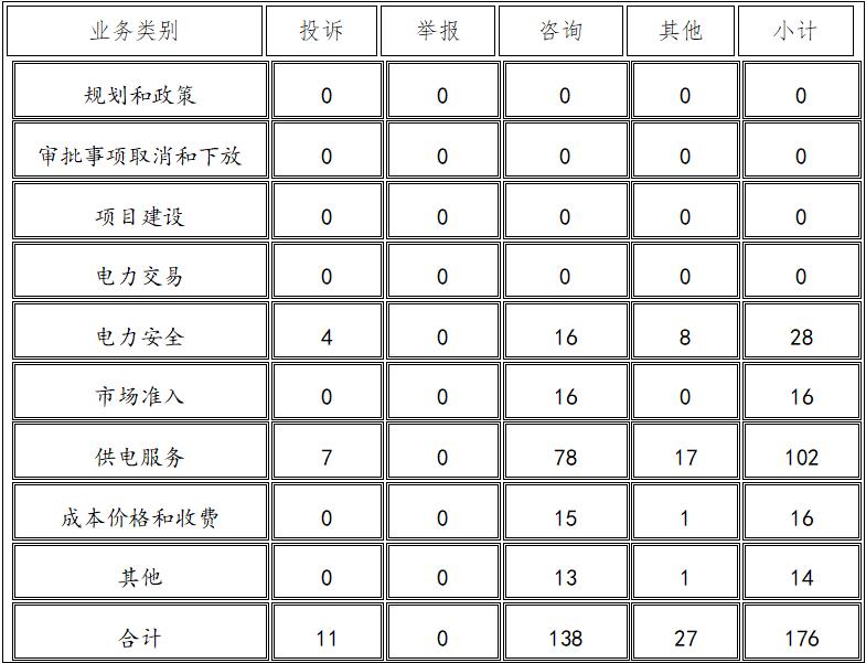 為了保護能源投資者、經營者、使用者的合法權益,維護能源市場秩序,依法履行監管職責,山西能源監管辦積極暢通投訴舉報渠道,切實發揮12398能源監管熱線(含12398電話、傳真、電子郵件等)的作用,認真受理能源監管投訴舉報事項,定期公布投訴舉報處理情況。現將2020年6月12398能源監管熱線(以下簡稱12398熱線)投訴舉報處理情況通報如下: