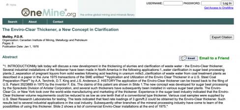 (圖片資料:1976年1月1日,加拿大礦業(yè),冶金和石油學院對艾姆斯特(AMSTAR ENVIRO-CLEAR)濃密機的討論)