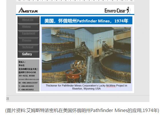 艾姆斯特(AMSTAR ENVIRO-CLEAR)的濃密機產(chǎn)品在全球范圍內(nèi)得到應(yīng)用,其中,在中國地區(qū),艾姆斯特(AMSTAR ENVIRO-CLEAR)自1984年向張家口金礦提供了第一臺直徑17英尺的高效濃密機(可能是中國的第一臺高效濃密機)起,1992年向貴州翁福新龍壩選廠提供直徑50英尺的高效濃密機;1992年向黃麥嶺磷礦提供了直徑23英尺的高效濃密機;1995年向神華大柳塔煤礦提供了兩臺直徑30米的高效濃密機;1995年向張家口金礦提供了第二臺直徑17英尺的高效濃密機;2002年向貴州翁福馬場坪磷礦提供了直徑50英尺的高效濃密機……,如今已在中國地區(qū)提供的濃密機等設(shè)備近40臺,詳見后附的業(yè)績表,國內(nèi)客戶包括:馬坑礦業(yè),江銅集團,中冶集團、山東黃金、云錫集團、河北鋼鐵、北方工業(yè)、南京鋼鐵、昆鋼集團、內(nèi)蒙地礦、金川集團、神華集團,甕福集團等。