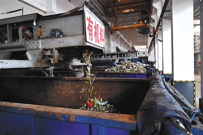 8月21日,小武基垃圾分選轉運站,機器設備在分選垃圾。