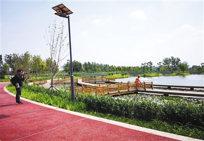 安南濕地環保主題公園位于南六環新鳳河邊,將于10月1日正式開園。記者近日來到園中看到,公園內有池塘、噴泉、棧橋、健身步道以及各類花草樹木,不少居民在園內散步,這座濕地公園儼然成為頗受歡迎的休閑場所。