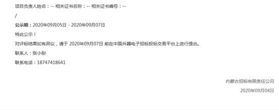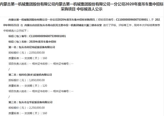 招標公司受業主委托,于2020-09-04在網上發布:內蒙古第一機械集團股份有限公司一分公司2020年度吊車集中招標采購項目結果公示。各有關單位請與公告中招標負責人接洽聯系,及時開展投標及相關工作,以免錯失商業機會。 |