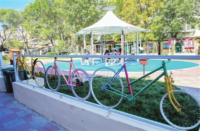 我市河東區充分結合小區特色和居民需求,利用社區空地著力打造一批“口袋公園”。日前,位于河東區向陽樓街道晨光樓社區26號樓旁的聚心園建成并開放,廢舊自行車做成的彩色圍墻、藍色的塑膠跑道、嶄新的健身驛站,亮麗的景觀讓人眼前一亮,讓居民可“推窗見綠、出門進園”,成為家門口休閑、運動、娛樂的好去處。(來源: 天津日報 吳迪)