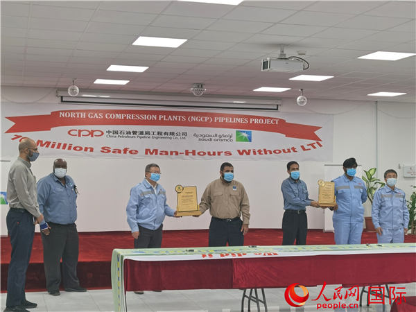 “連續超過一千萬工時安全生產無事故!”日前,沙特哈拉德及哈維亞北部壓氣站管道項目(簡稱“NGCP項目”)業主方沙特阿美石油公司(阿美石油)來到項目營地,為承建方中石油管道局頒發“安全獎章”并舉辦慶祝儀式,表彰其安全生產取得的成績。