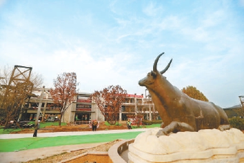 廠房外,北京銅牛廠的銅牛雕塑還原狀保留著,與牛首相對(duì)的不遠(yuǎn)方,是一座高大的紅磚煙囪。這些工業(yè)符號(hào),記錄著北京銅牛廠曾經(jīng)輝煌的過往。