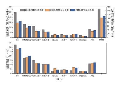 2016-2019年3個秋冬季“2+26”城市PM2.5組分特征變化