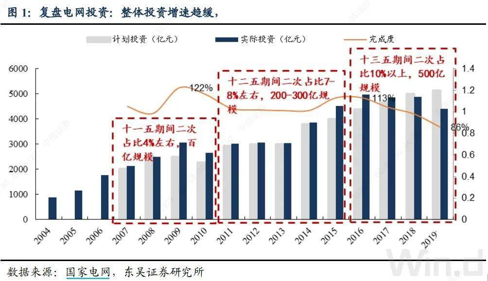 ① 02 年電改-08 年:集中力量解決供電瓶頸:02 年《電力體制改革方案》,國網開始獨立運營,彼時國內電網基礎設施落后,03-08 年電網投資持續高增,從 03 年的 1014 億增長至 08 年的 2885 億,CAGR=23%,投資重點聚焦輸變電基礎設施環節;