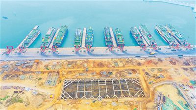 據了解,該項目于今年10月開工,建設內容包括一座T字形客運樞紐站及其室外總坪工程。項目用地面積36.56萬平方米,總建筑面積8.32萬平方米,工程總造價9.443億元。該項目建成后,將大幅提升新海港接待服務水平,并輻射帶動周邊旅游、商業、文化、服務等產業的整體發展,促進??诟?、產、城一體化發展。 記者 張茂 攝