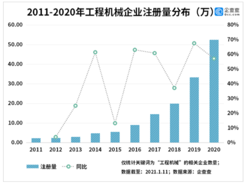 原標題:2020年我國工程機械相關企業注冊量同比增長57%