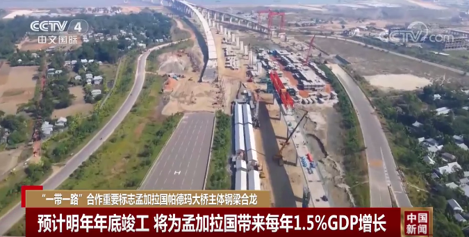 站在孟加拉國帕德瑪河邊,一橋飛架南北的雛形已現。在中國獨創的技術和設備加持下,近期,孟加拉人心目中的這座“夢想之橋”成功合龍。