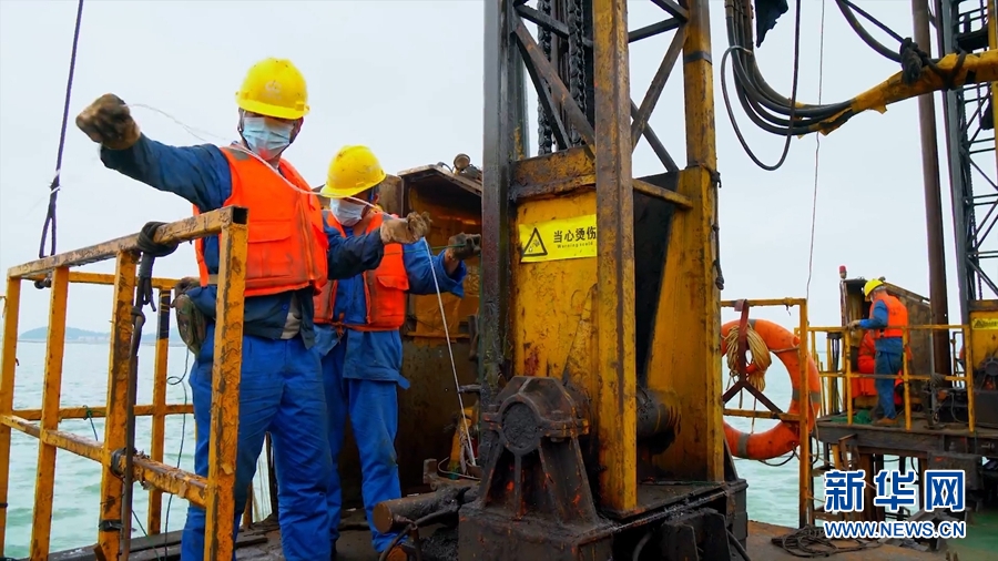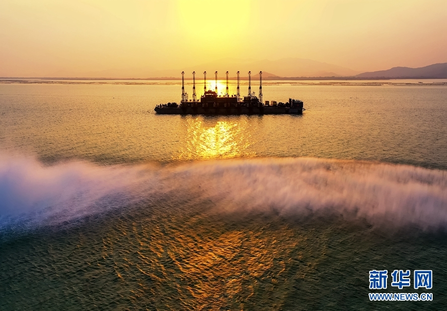 近日,據中鐵廣州工程局集團消息,目前已完成疏浚工程量過半。圖為工作人員在進行作業。新華網發(曾鎧鋼攝)