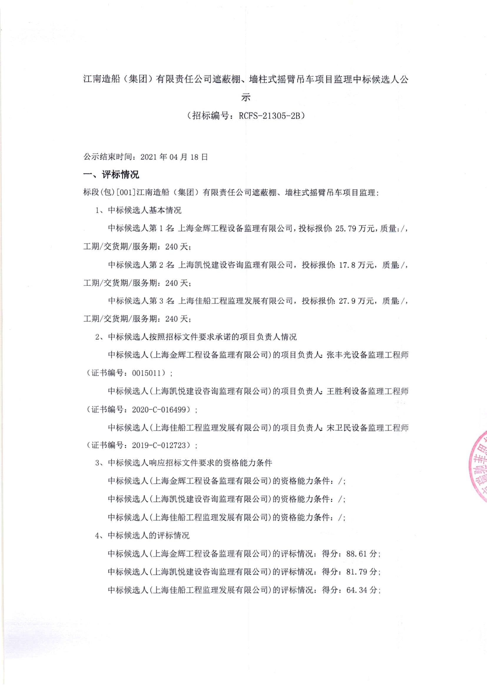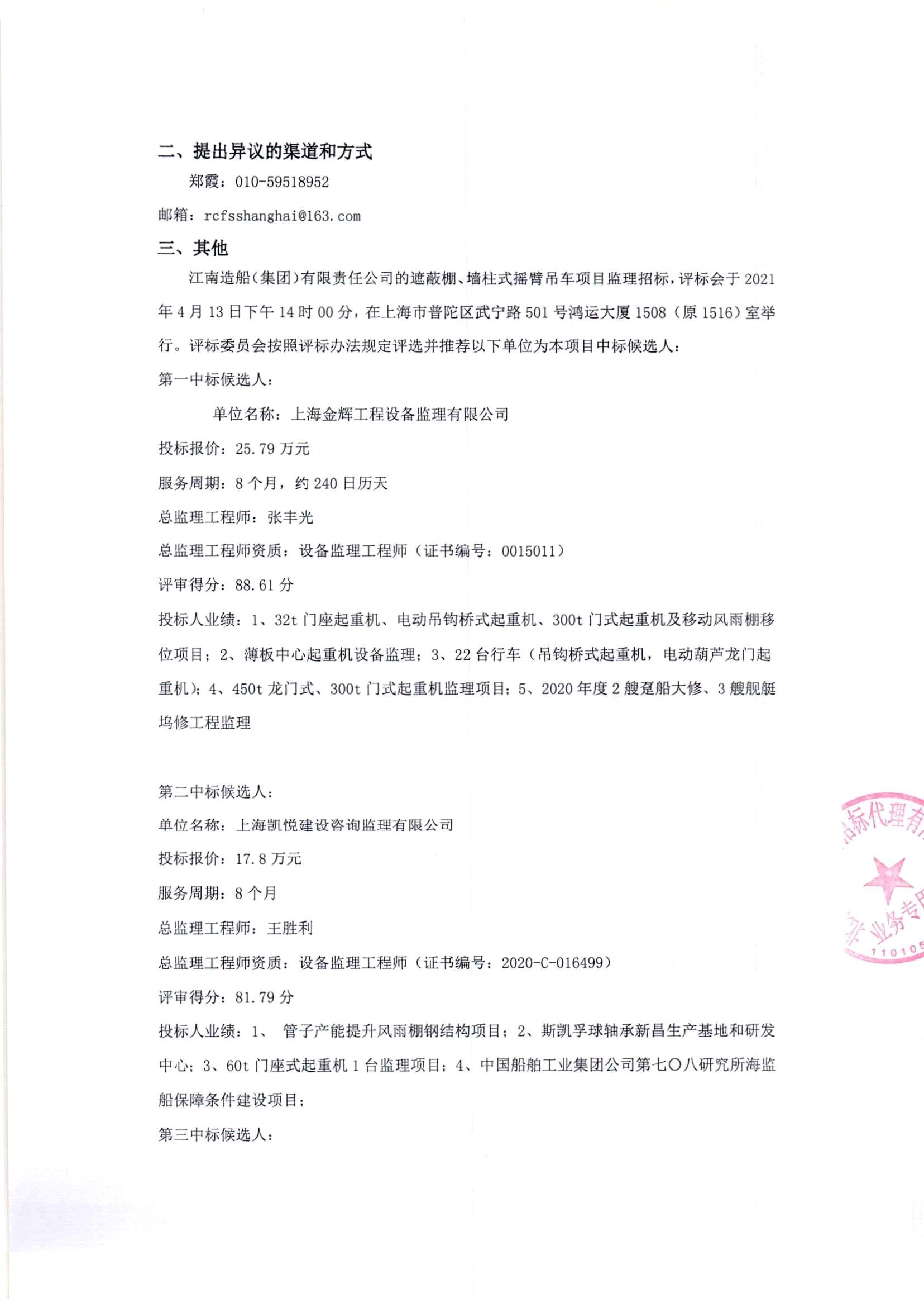 移動版:上海:遮蔽棚、墻柱式搖臂吊車項目監理中標候選人公示
