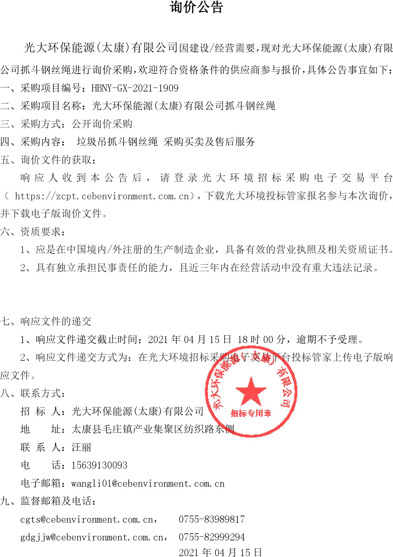 光大環保能源(太康)有限公司抓斗鋼絲繩詢價公告 SWF文件鏈接