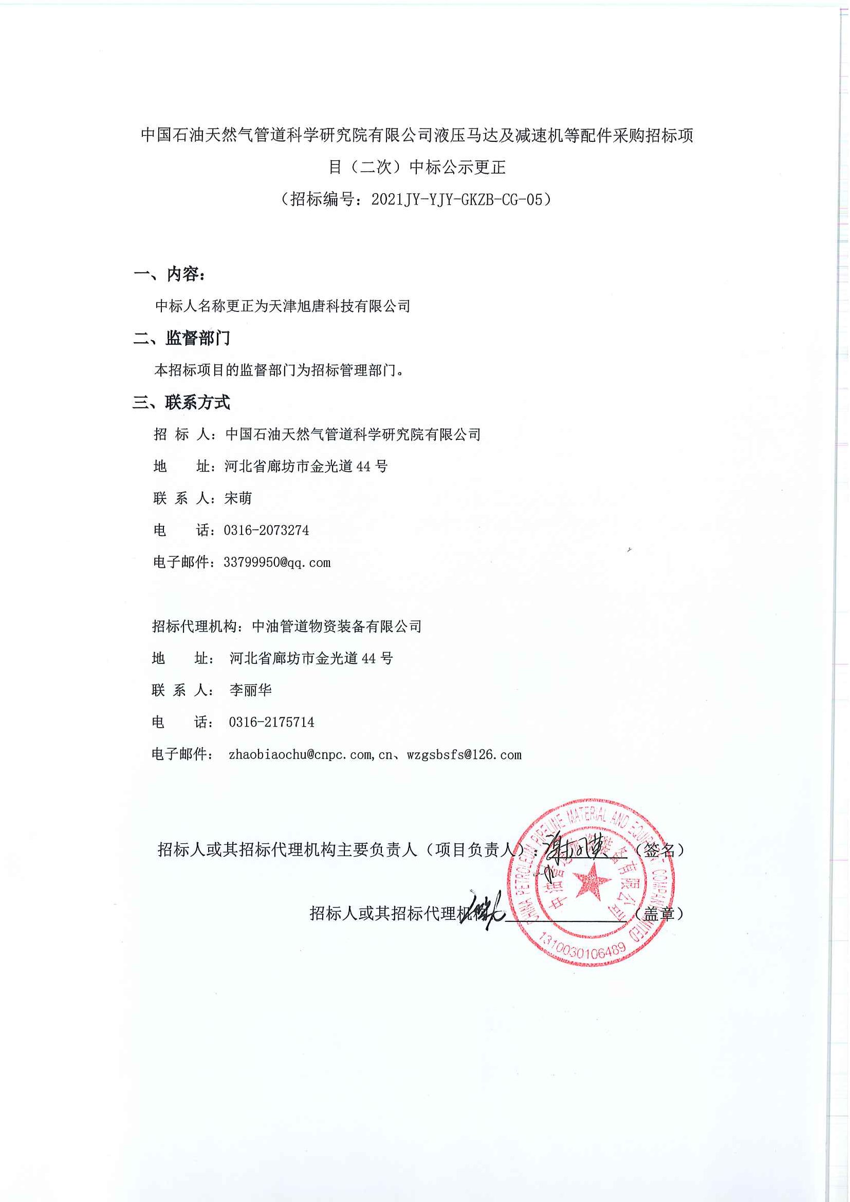 移動版:河北:液壓馬達及減速機等配件采購招標項目(二次)中標公示更正