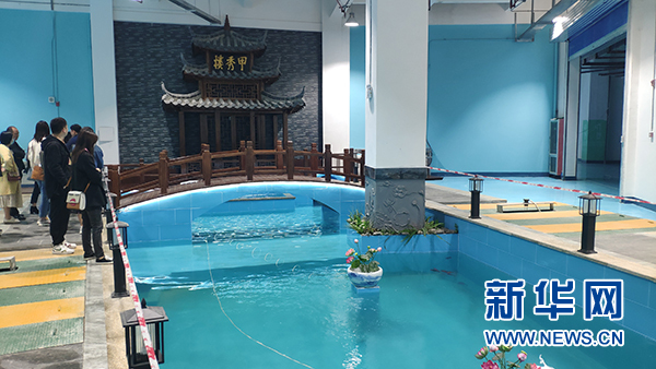 來賓參觀六廣門再生水廠廠區(qū)內(nèi)修建的再生水生態(tài)展示區(qū)(4月2日攝)。新華網(wǎng) 黃勇 攝