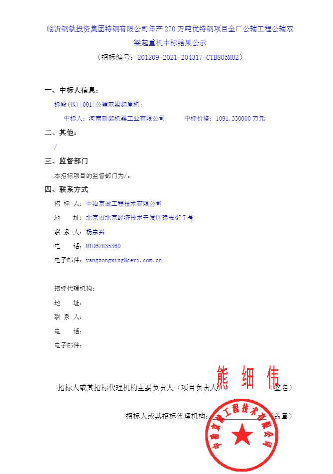 移動版:山東:公輔工程公輔雙梁起重機中標結果公示