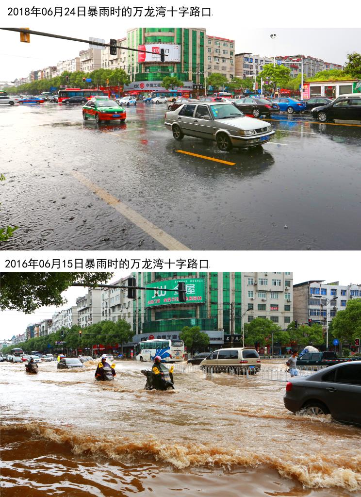 圖為萍鄉市萬龍灣十字路口海綿城市改造前后對比照片 圖片來源:萍鄉市海綿辦
