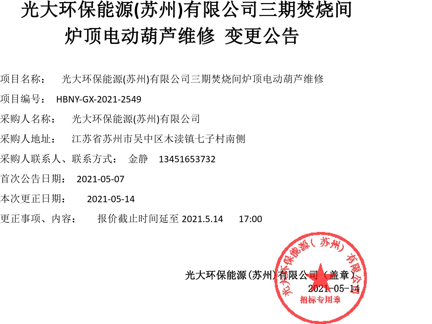 移動版:江蘇:三期焚燒間爐頂電動葫蘆維修變更公告