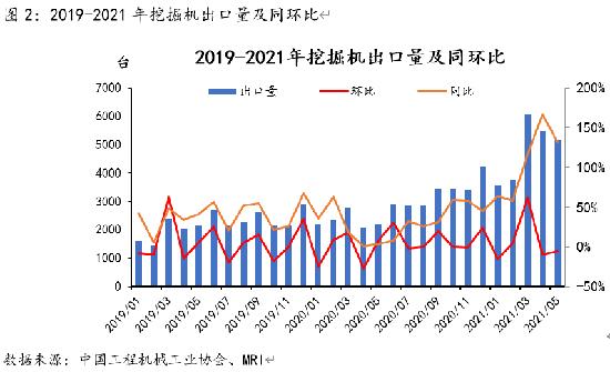 5月挖掘機銷量同比自2020年3月以來首次出現負增長,其中國內銷量連續兩個月為負增長,出口持續保持高增長。銷量出現回落的原因,一、去年高基數影響。去年同期疫情控制后,下游房地產、基建行業復蘇,帶動挖機需求快速增長,導致去年基數大幅提升。二、需求提前透支。2021年1-4月我國地產開發及基建投資同比增速分別為21.6%、18.4%,較19年同期增長17.6%、4.4%,4月單月地產開發及基建投資同比增長13.7%、2.6%,地產依然保持高增速,基建持續溫和復蘇,對挖掘機需求依然保持高增長。從5月的小松中國挖掘機開工小時125.7,與4月基本持平來,也印證了下游行業對挖掘機需求依然保持較高水平。主要今年一季度以來銷量保持高增長,尤其是3月市場銷售突破歷史新高,提前預支了4、5月的銷售。三、鋼價的大幅上漲,傳導至工程機械銷售價格上調,進而影響下游采購熱情。3月以來,鋼價格大幅上漲,5月甚至脫離基本面大幅上漲,增加了制造企業成本,雖然年度來看,大型工程機械可以通過各種方式對沖成本壓力,但在鋼價持續上漲的背景下,企業短期利潤大幅收縮,具備核心競爭力的企業被動調整部分品種銷售價格,這使得下游壓力劇增,進而減少訂單。