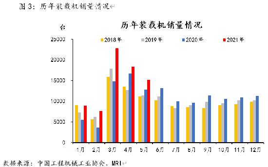 據中國工程機械工業協會對23家裝載機制造企業統計,2021年5月銷售各類裝載機15145臺,同比增長17.3%。其中:3噸及以上裝載機銷售14217臺,同比增長17%。總銷售量中國內市場銷量12427臺,同比增長7.48%;出口銷量2718臺,同比增長102%。2021年1-5月,共銷售各類裝載機72832臺,同比增長34.3%。其中:3噸及以上裝載機銷售67293臺,同比增長31.2%。總銷售量中國內市場銷量58225臺,同比增長30.2%;出口銷量14607臺,同比增長54%。