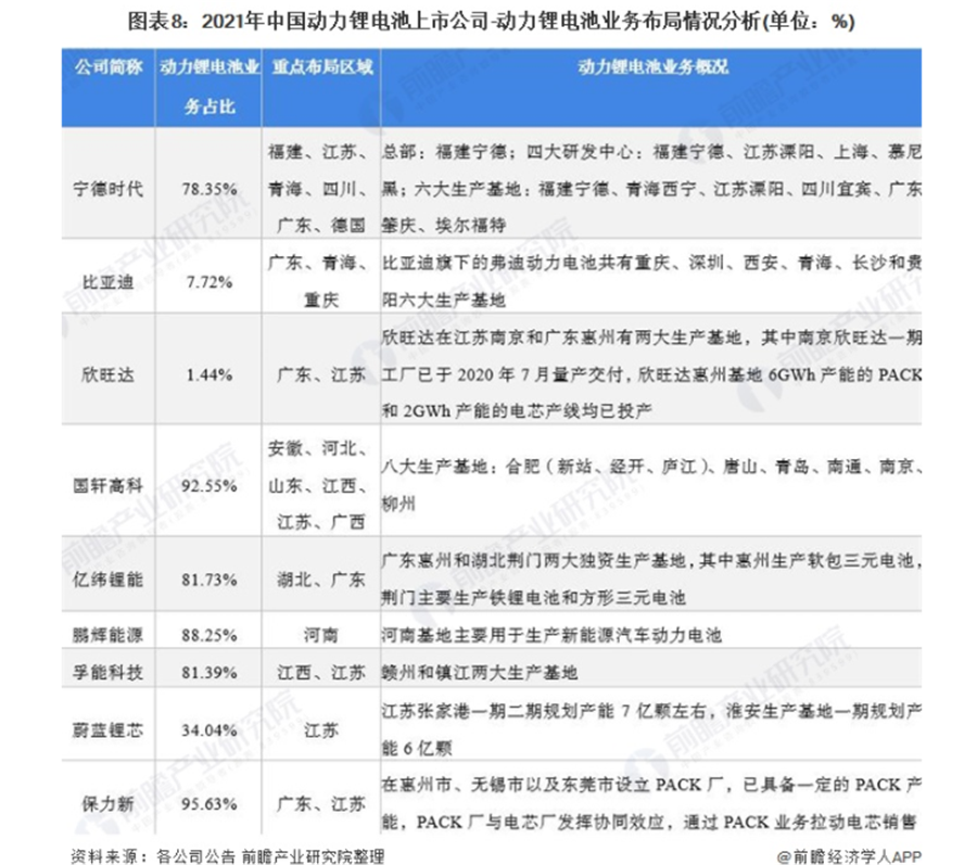動力鋰電池行業上市公司業務布局對比