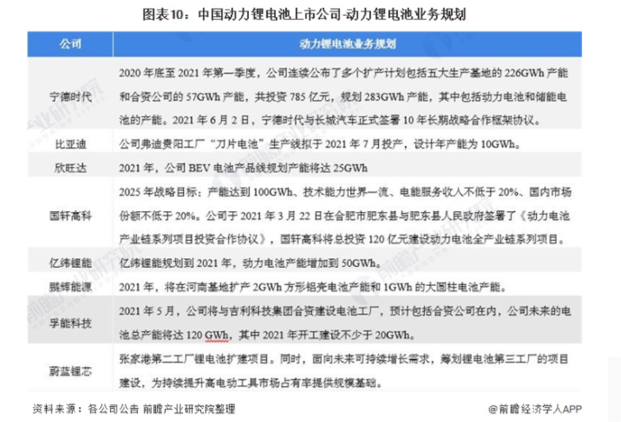 動力鋰電池行業上市公司動力鋰電池業務規劃對比