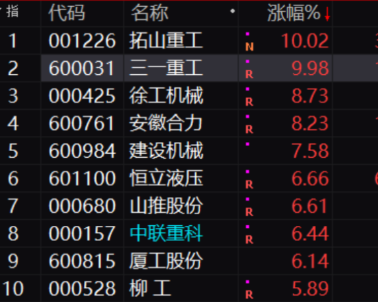 行業(yè)人士以為,跟著各地基建繼續(xù)發(fā)力,地產(chǎn)行業(yè)“三支箭”落地,工程機械需求回暖預(yù)期開始強化。根據(jù)低估值和行業(yè)觸底上升預(yù)期,有資金開始出場搜集“賤價”籌碼,今天,包含恒立液壓(601100.SH)、徐工機械(000425.SZ)、三一重工(600031.SH)、中聯(lián)重科(000157.SZ)等機械“茅”創(chuàng)年內(nèi)新高。