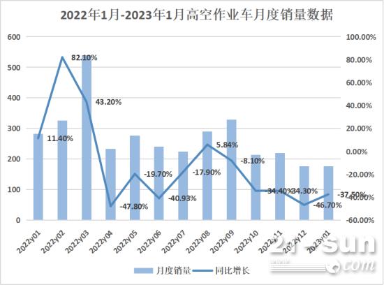 據我國工程機械工業協會對9家高空作業車制作企業計算,2023年1月當月出售各類高空作業車177臺,同比下降37.5%。