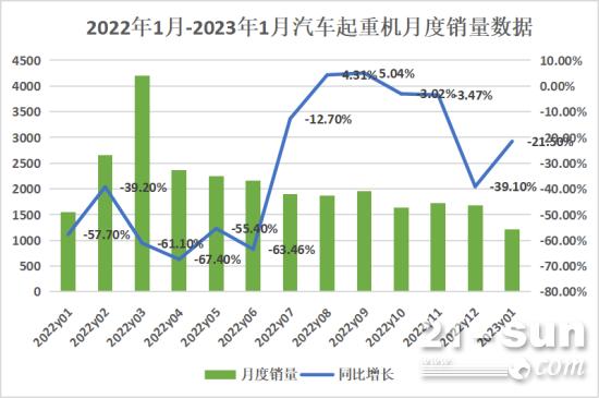 據(jù)我國工程機械工業(yè)協(xié)會對7家轎車起重機制造企業(yè)計算,2023年1月當(dāng)月出售各類轎車起重機1216臺,同比下降21.5%。