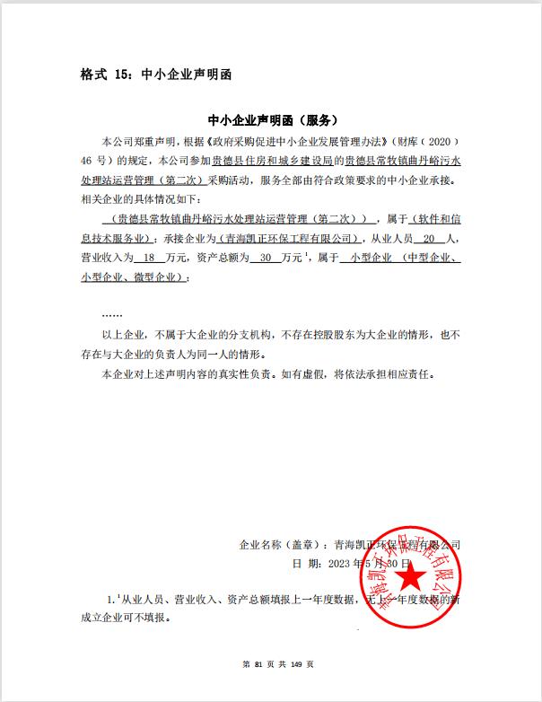一、項目編號:青海佳林競磋(服務)2023-004-1 二、項目名稱:貴德縣常牧鎮曲丹峪污水處理站運營管理(第二次) 三、中標(成交)信息 1.中標結果: