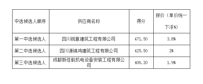 1.根據綜合評分法,我單位確定四川銳意建筑工程有限公司成為本次采購項目的中選供應商。