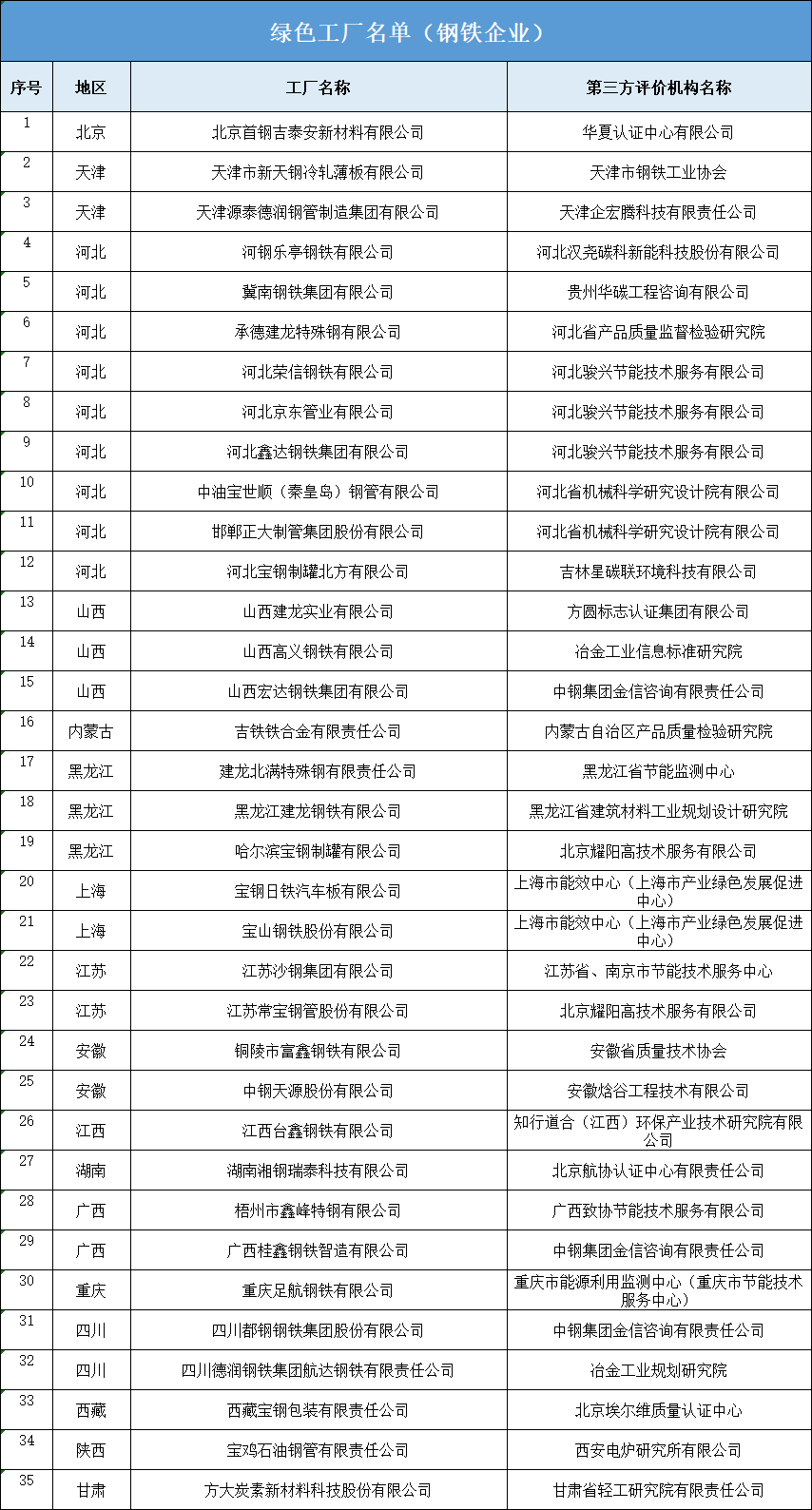 其中,據不完全統計,35家鋼鐵相關企業上榜綠色工廠名單。