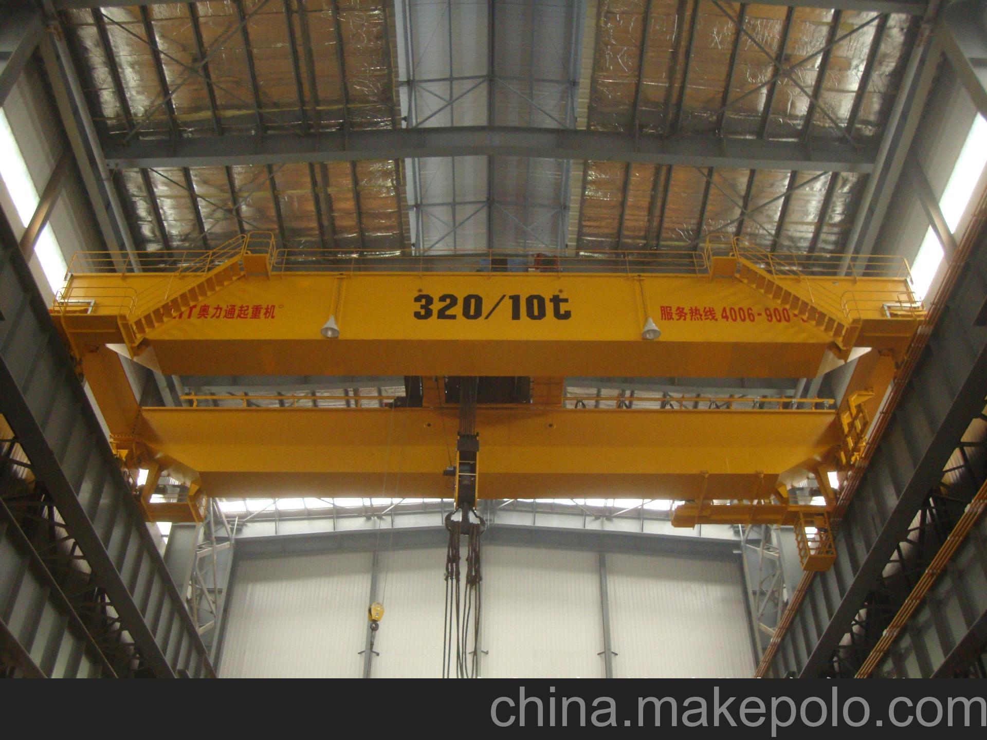 雙梁橋式起重機一般由機械、電氣和金屬結構三大部分組成。雙梁橋式起重機外形象一個兩端支承在平行的兩條架空軌道上 平移運行的單跨平板橋。
