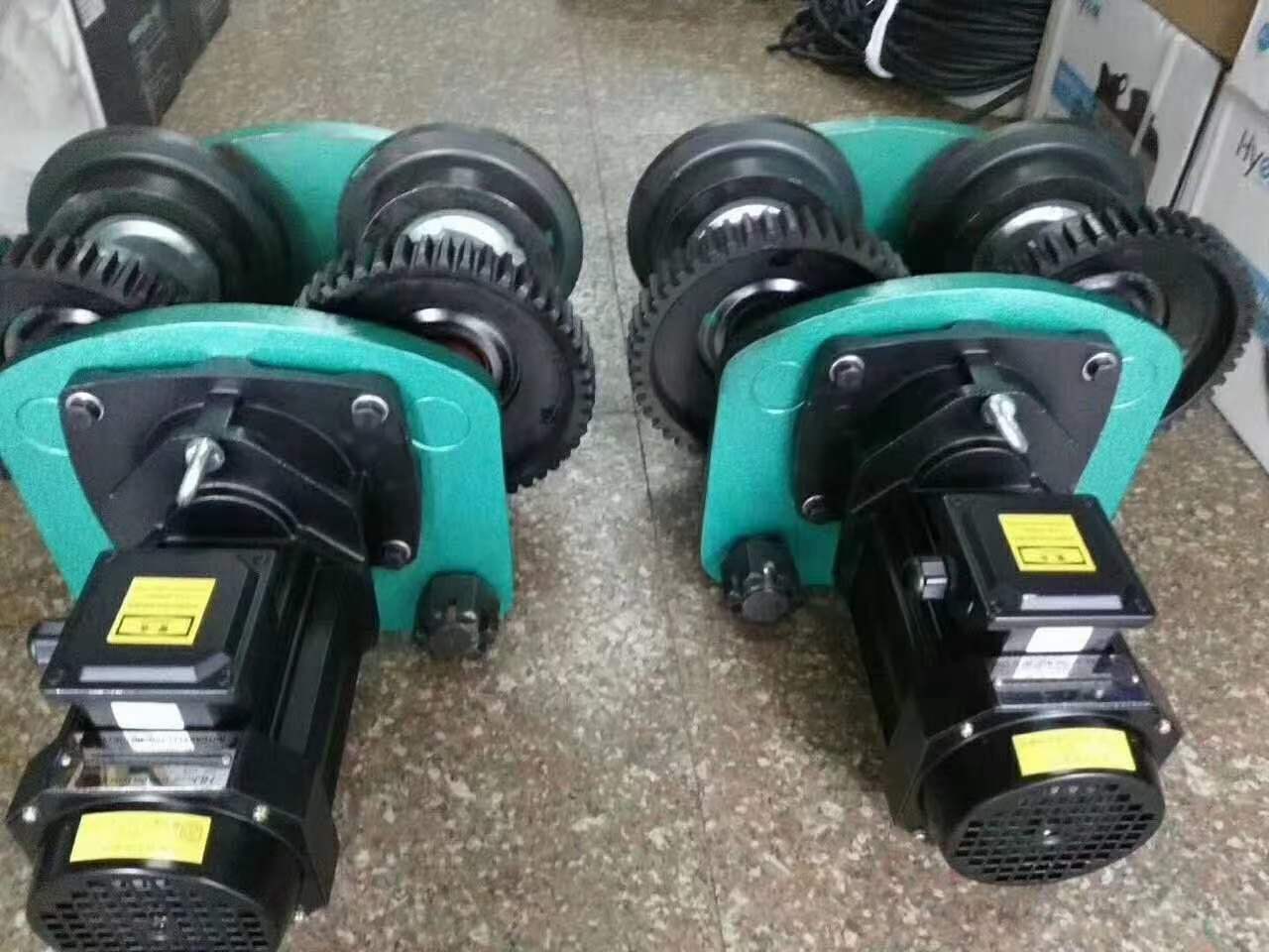 運行機構也稱電動小車、運行小車,跑車,由帶制動器的錐形轉子電動機通過運行減速器帶動小車的一對主動輪,使整個葫蘆沿著工字鋼軌道移動;5t(含5t)以下為一套驅動裝置,10t、16t采用兩套驅動裝置;當用于箱形梁或與H型鋼配套使用時,車輪踏面為直線形,用于工字鋼軌道時,車輪踏面為圓弧形。