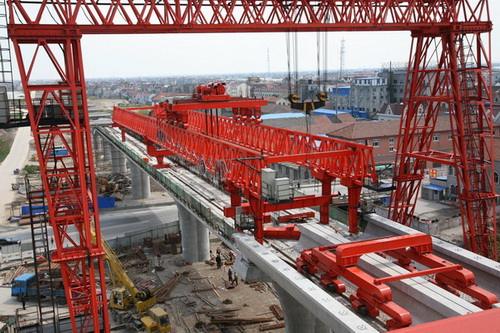 架橋機**是將預制好的梁片放置到預制好的橋墩上去的設備。架橋機屬于起重機范疇,因為其主要功能是將梁片提起,然后運送到位置后放下。但其與一般意義上的起重機有很大的不同。其要求的條件苛刻,并且存在梁片上走行,或者叫縱移。架橋機是一種運行工作范圍廣、性能優良、操作方便、結構安全的鋼結構軌道式預制梁吊裝架設設備。